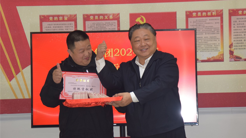 集團(tuán)董事長吳晉龍為總工程師王亮亮頒發(fā)特別貢獻(xiàn)獎